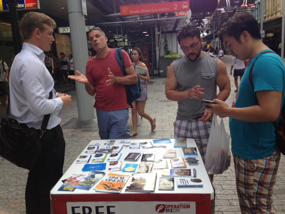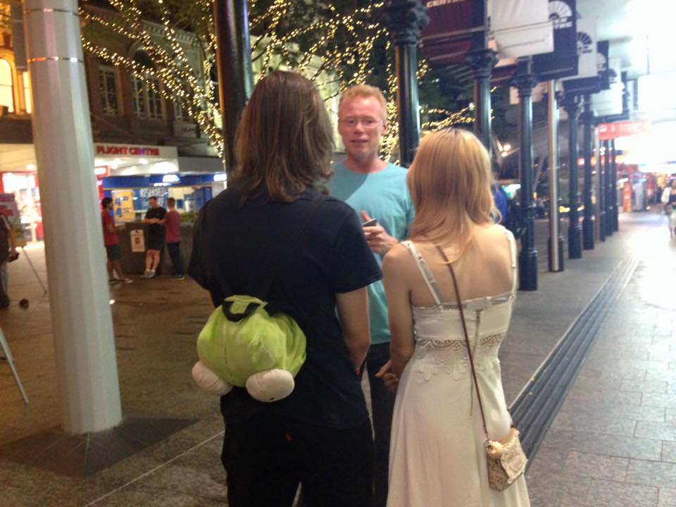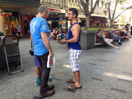 It was an eventful afternoon of evangelism yesterday in Brisbane city.