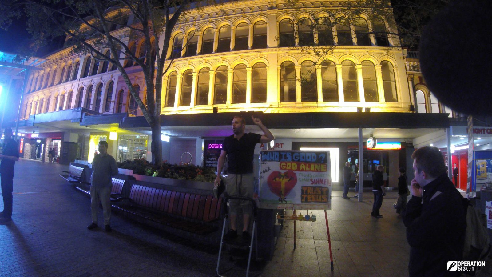 Posted 11 November 2015, 10:22 AM by Matthew Andersen. PermalinkIt was a quiet night in the Queen Street Mall, however there were still enough people to talk to. Despite the slowness of the night, a crowd still gathered to hear the Gospel proclaimed in the open-air.