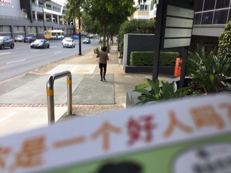 We started with a prayer to ask the Holy Spirit to pave the way for us and then formed two teams with me and Kiateck across the pedestrian bridge to the other side of the Benson Road. I stayed at the foot of the bridge and Kiateck went 30m further to take position at the traffic light. Johnny and Lily teamed up to do street evangelism at the front entrance of Toowong Tower. They were joined later by Chi Ming who is also a member of the Sherwood Methodist Church.